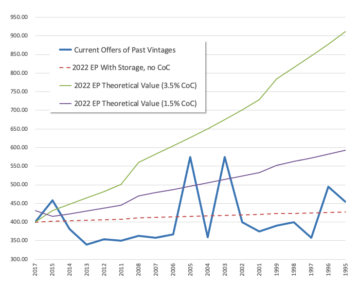 Latour hasn't been part of En Primeur for years, but it clearly felt a need to offer overpriced initial release of wine. Mind you, 2022 Bordeaux En Primeur set this bar exceedingly high, and I reckon 2023 will attempt similar ridiculousness... but I digress. 2017 Latour is the definition of "Rating Inflation", scored by some at 98 points even though this vintage overall was decidedly poor. The Bordelais seem to still believe that interest rates are still at zero. Comparing different vintages, and factoring in the cost of financing them, means such pricing of new releases is nonsensical, even if you bought into the rating inflationary 98 pointer (.... hmmm). 1996 truly sticks out as a bargain in this chart, tasted over the years, its greatness is well stress tested and yet its effectively offered at £70 over 2017 with storage costs alone, and incredibly CHEAP with 21 years of financing factored in!